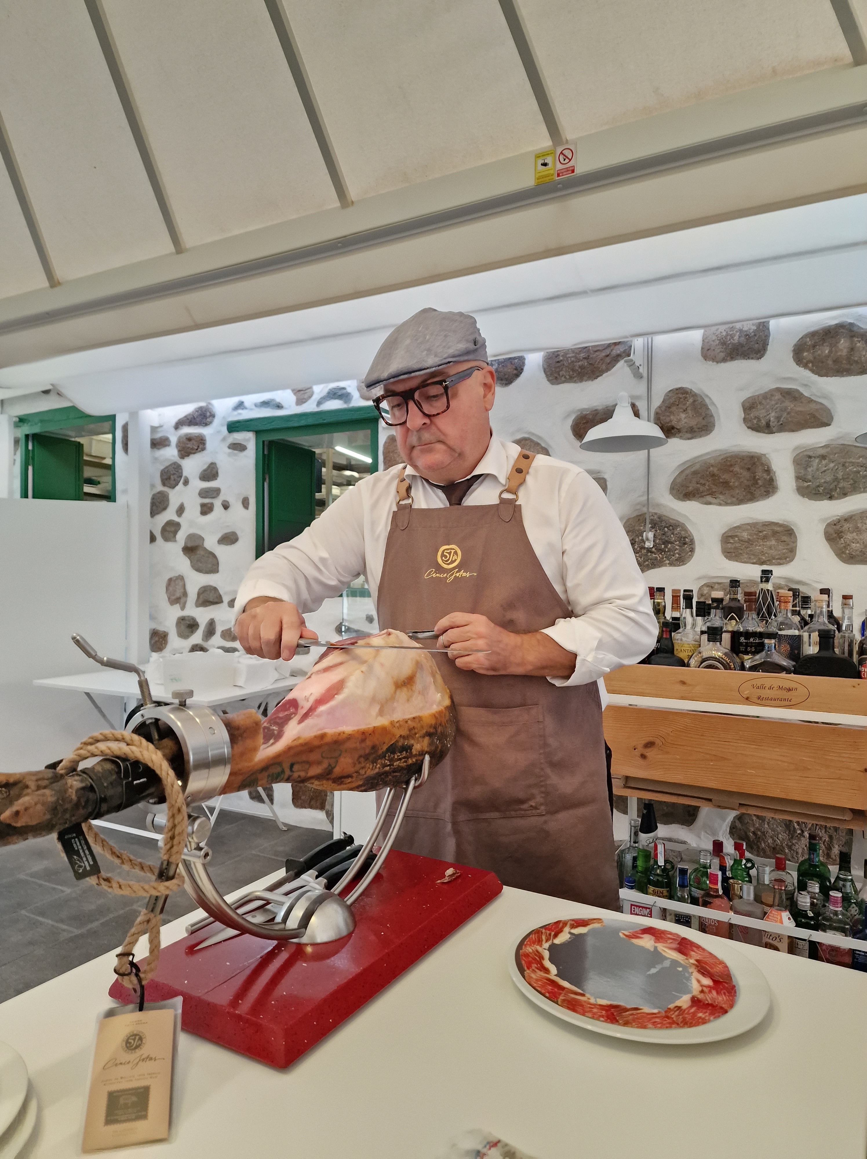 As part of the Cured Meats tasting you will be invited to sample a selection of meats such as the: Iberian ham, Chorizo Sausage, Salchichon. You will learn about the production of very famous ham «5 Jotas».