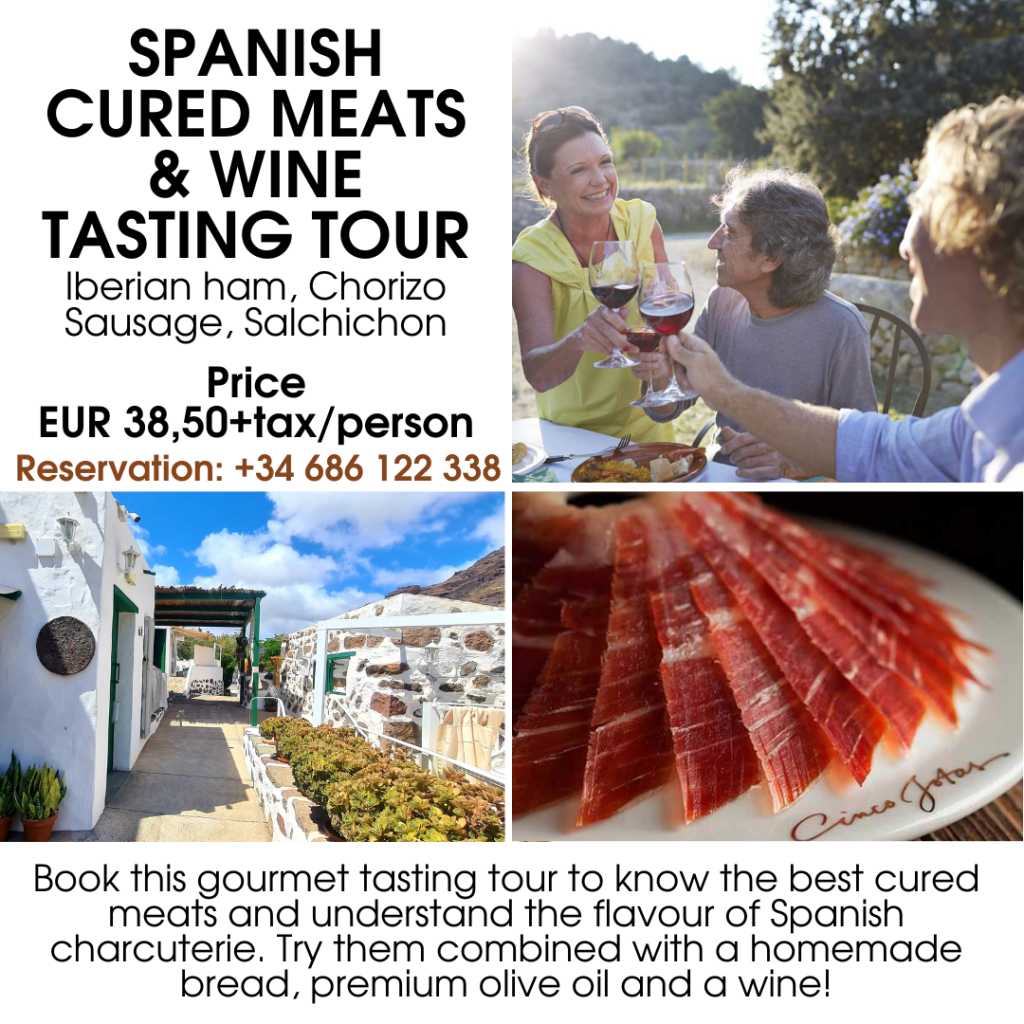 A guest professional maître sumelier from Valle de Mogan restaurant will tell you about the spanish wines and famous types of charcuterie or canarian cheese or spanish tapas depends on your choise.
